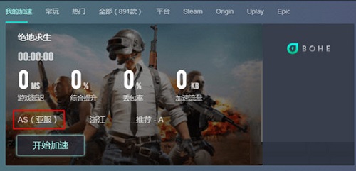 答:首先我们以吃鸡这款区服多的游戏为例子,选择绝地求生进入加速页面后,先点击延迟下方的服务器选择。