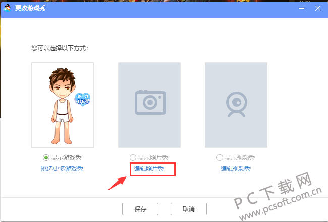 2、弹出更改游戏秀的界面,点击“编辑照片秀”选项。